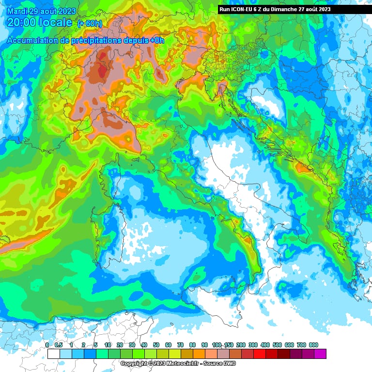Accumuli importanti fino a martedì con zone che supereranno i 100mm d’acqua.