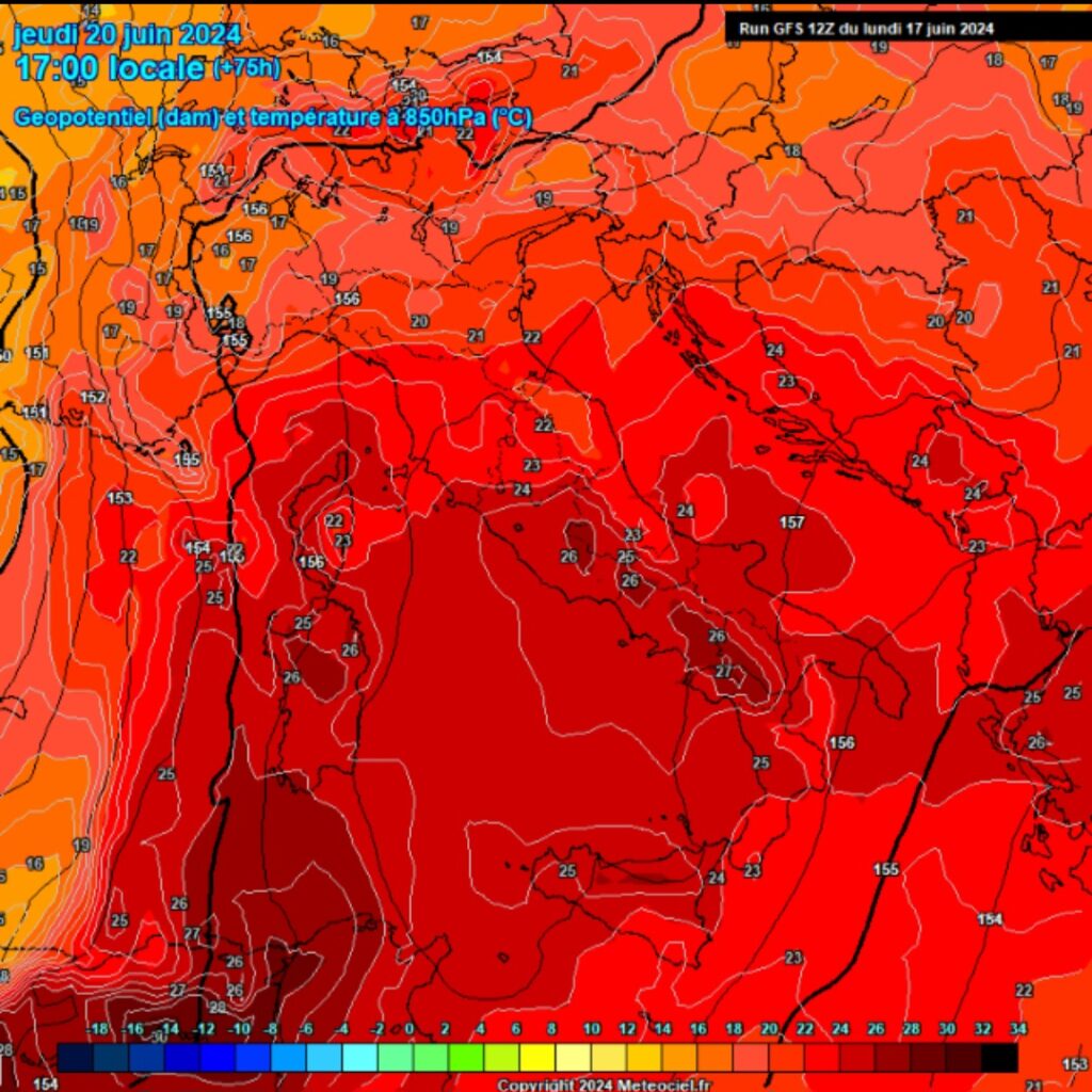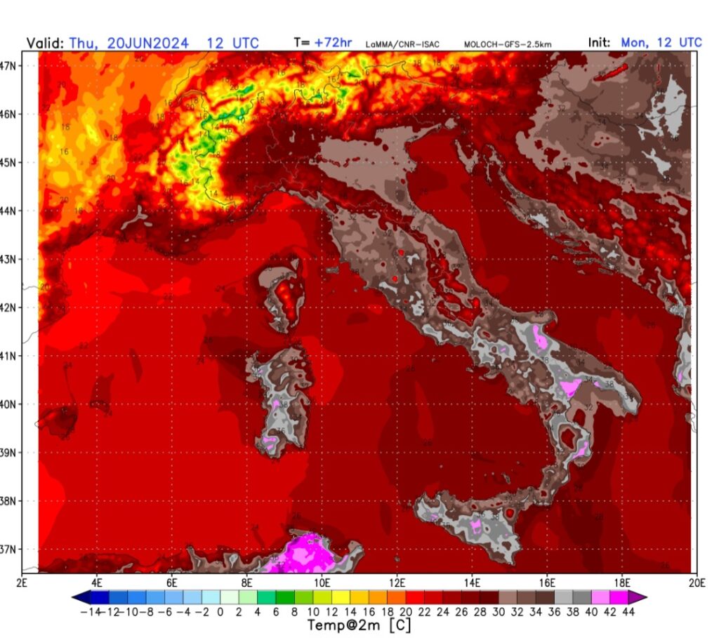 Tra giovedì e venerdì atteso il clou del caldo sulla nostra penisola, con temperature in quota di +26/27°. Al suolo attesi picchi di 38/40°