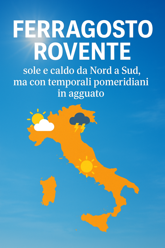 Domani, giornata di Ferragosto, avremo caldo e bel tempo da Nord a Sud, ma con temporali pomeridiani in agguato.